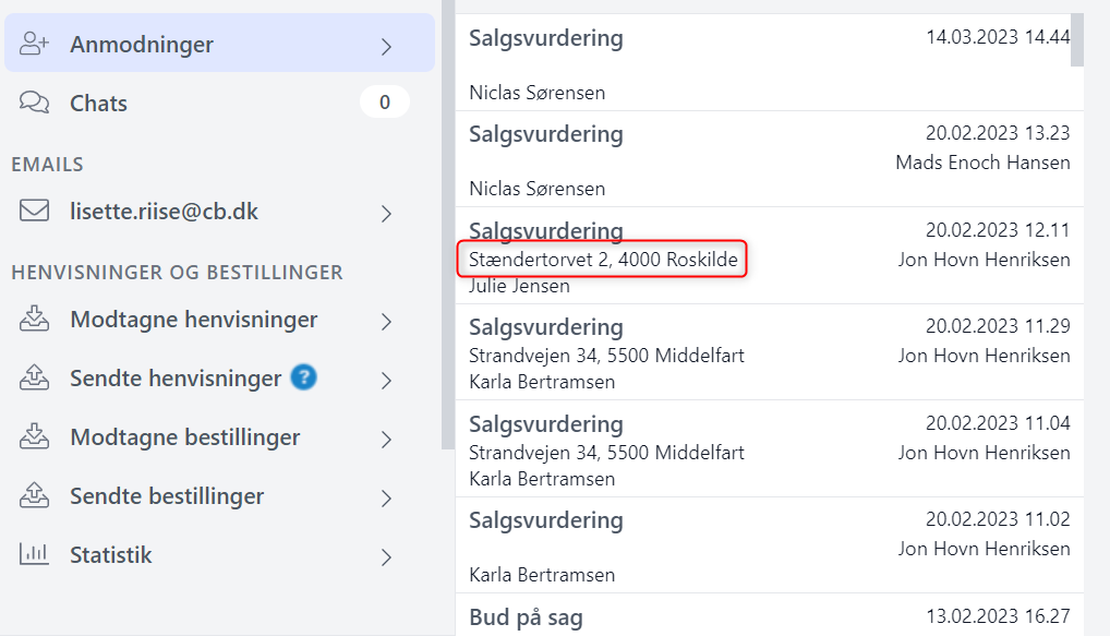 Postnummer og by fremgår naturligvis kun, hvis kunden har angivet det ved fx anmodning om salgsvurdering.