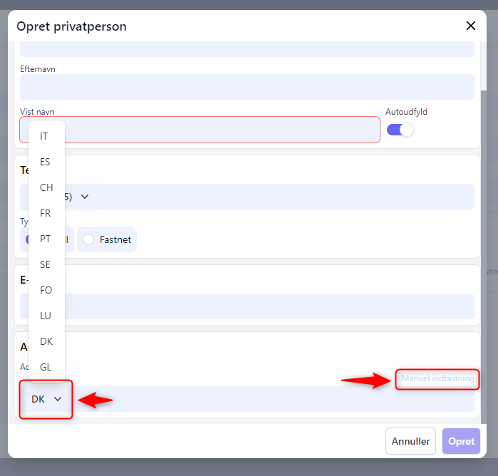 Udenlandske- og manuelt indtastede adresser