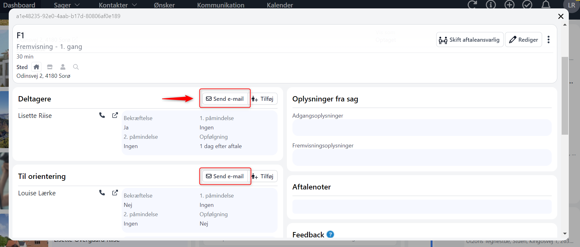 Der er nu en "send e-mail" knap, når du åbner din kalenderaftale.