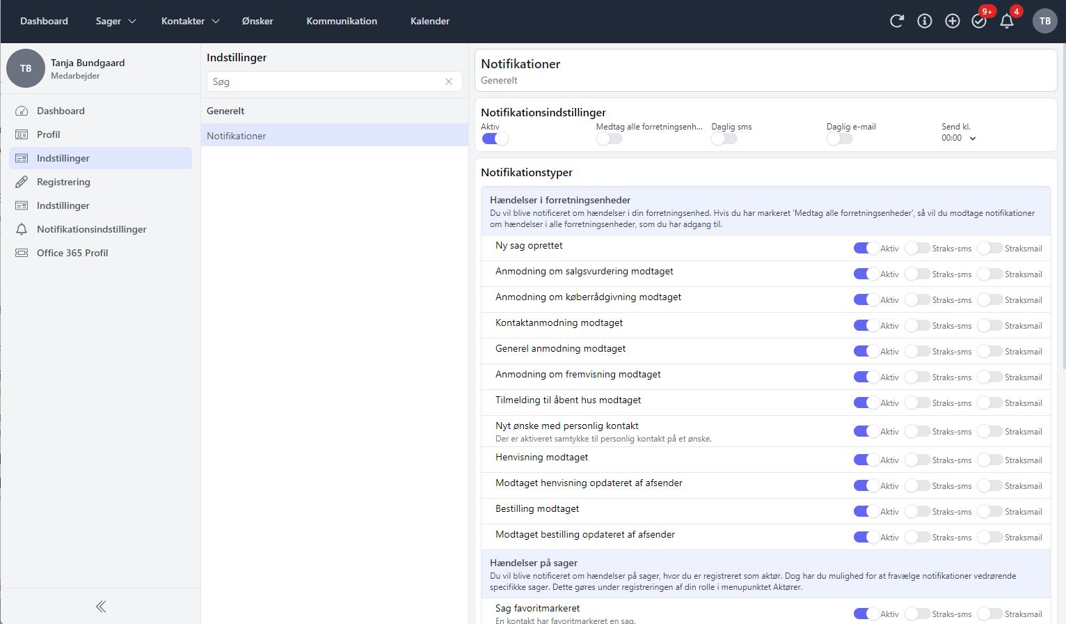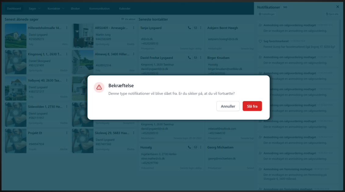 Det gÊlder naturligvis ikke kun anmodninger om salgsvurderinger og fremvisninger - men ogsÄ mange andre muligheder for notifikationer, som kan forbedre din hverdag, om end du er ejendomsmÊgler eller sagsbehandler!