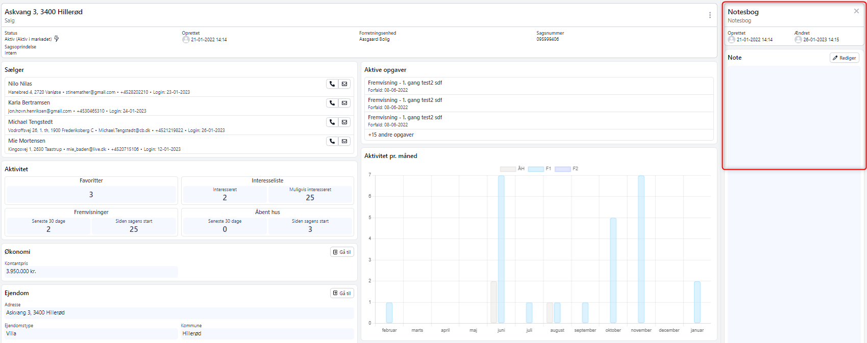 Dette giver dig igen et nemt og hurtigt overblik over kundens aktivitet, sager, aftaler mv.