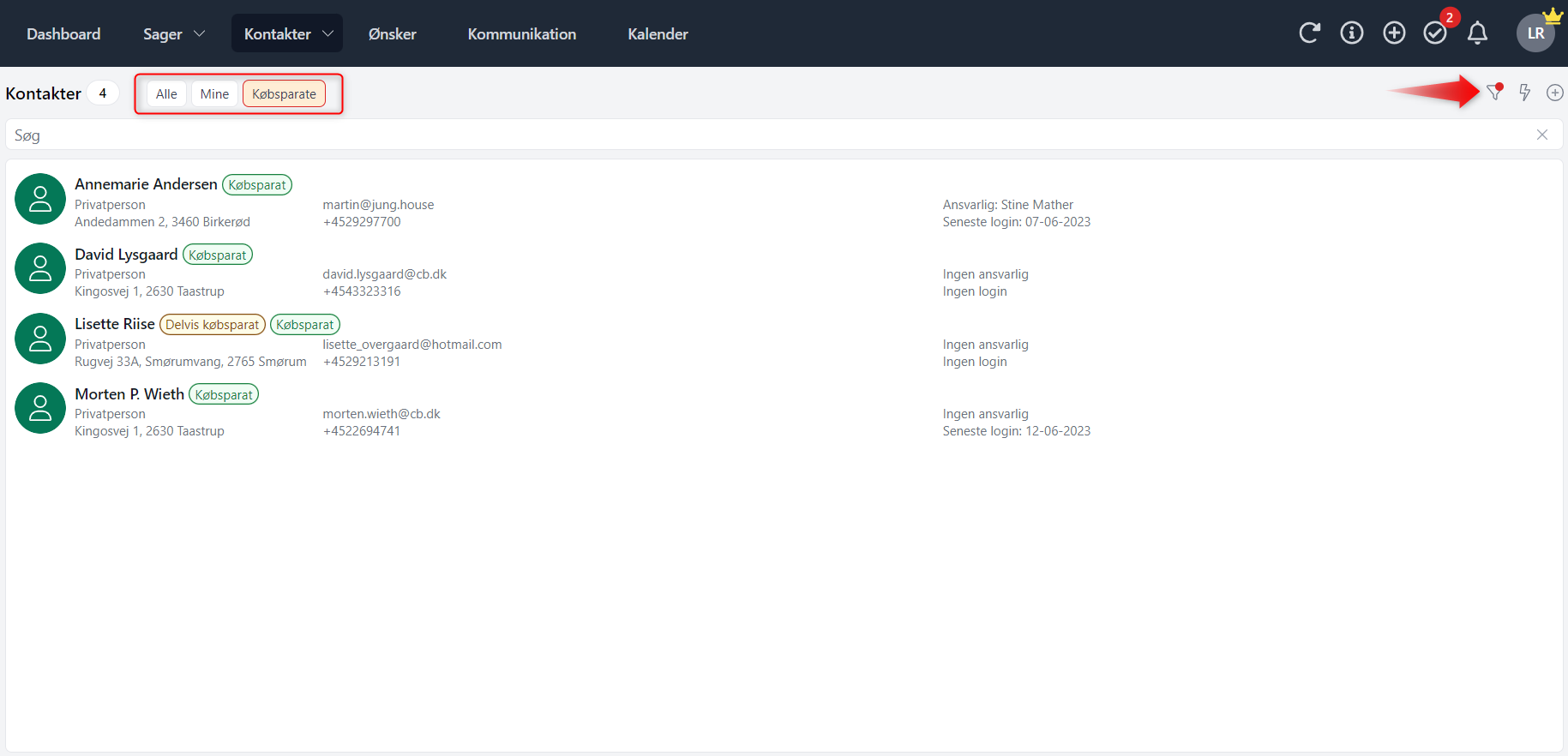 👌🏽 NYT filter - filtrer på kontakter og ønsker, som ikke har en ansvarlig