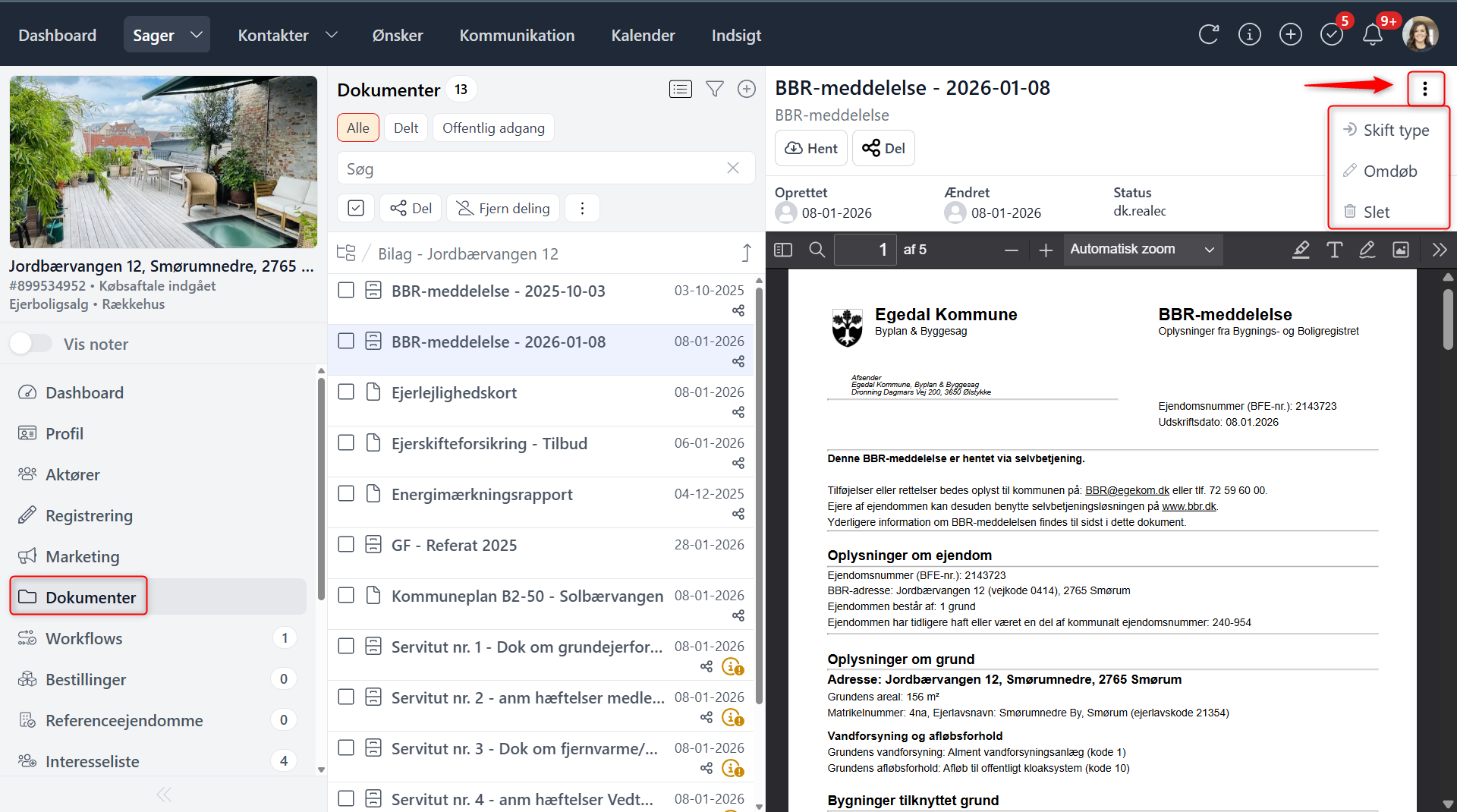 Herefter hentes ejendommens dokumenter på ny og opdateres automatisk på sagen. VIGTIGT