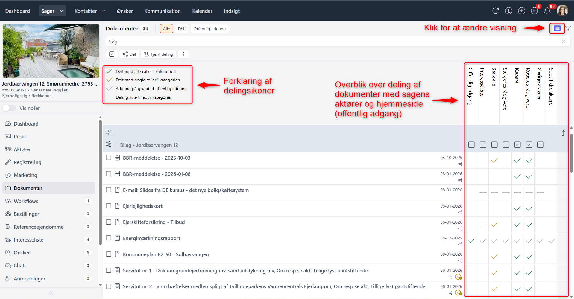 du bl.a. vil se hvilke dokumenter der er delt med køber og sælger